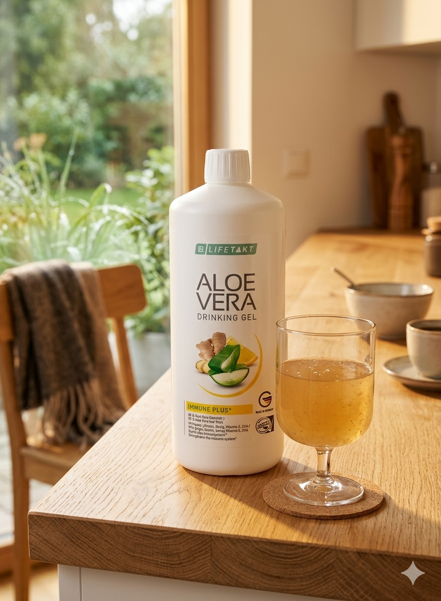 Découvrez l’Aloe Vera Gel à Boire Immune Plus LR LIFETAKT, votre allié puissant pour un renforcement naturel et efficace de votre système immunitaire. Cette boisson innovante combine la pureté du gel d’aloe vera à 85% avec des ingrédients immunostimulants clés : vitamine C haute dose, zinc, sélénium, et des extraits revitalisants de gingembre et citron. C’est le complément parfait pour soutenir vos défenses naturelles, maintenir votre vitalité et protéger votre organisme tout au long de l’année.